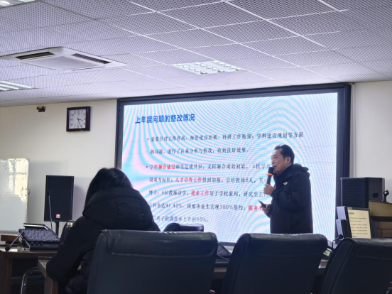 学院党委副书记周艳玲就学生工作、工会工作、创新创业工作作了总结,并就寒假期间学生安全稳定等工作做了具体部署。她表示,过去一年学院学生工作整体平稳,在就业、创新创业、团学活动、心理健康教育等方面取得多项荣誉。同时,她也指出当前学生心理健康、考风考纪、就业压力等方面面临的挑战,呼吁全体教师共同关注学生成长,筑牢安全防护网;工会方面,学院全年开展慰问与文体活动28次,有效增强了教职工的归属感与凝聚力。