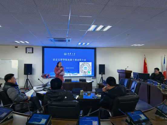 2026年1月23日下午,语言文学学院在崇礼楼北模联教室召开2025年度教职工大会暨领导班子述职会议。学院全体教职工参加会议,会议由党委书记龙志坚主持。