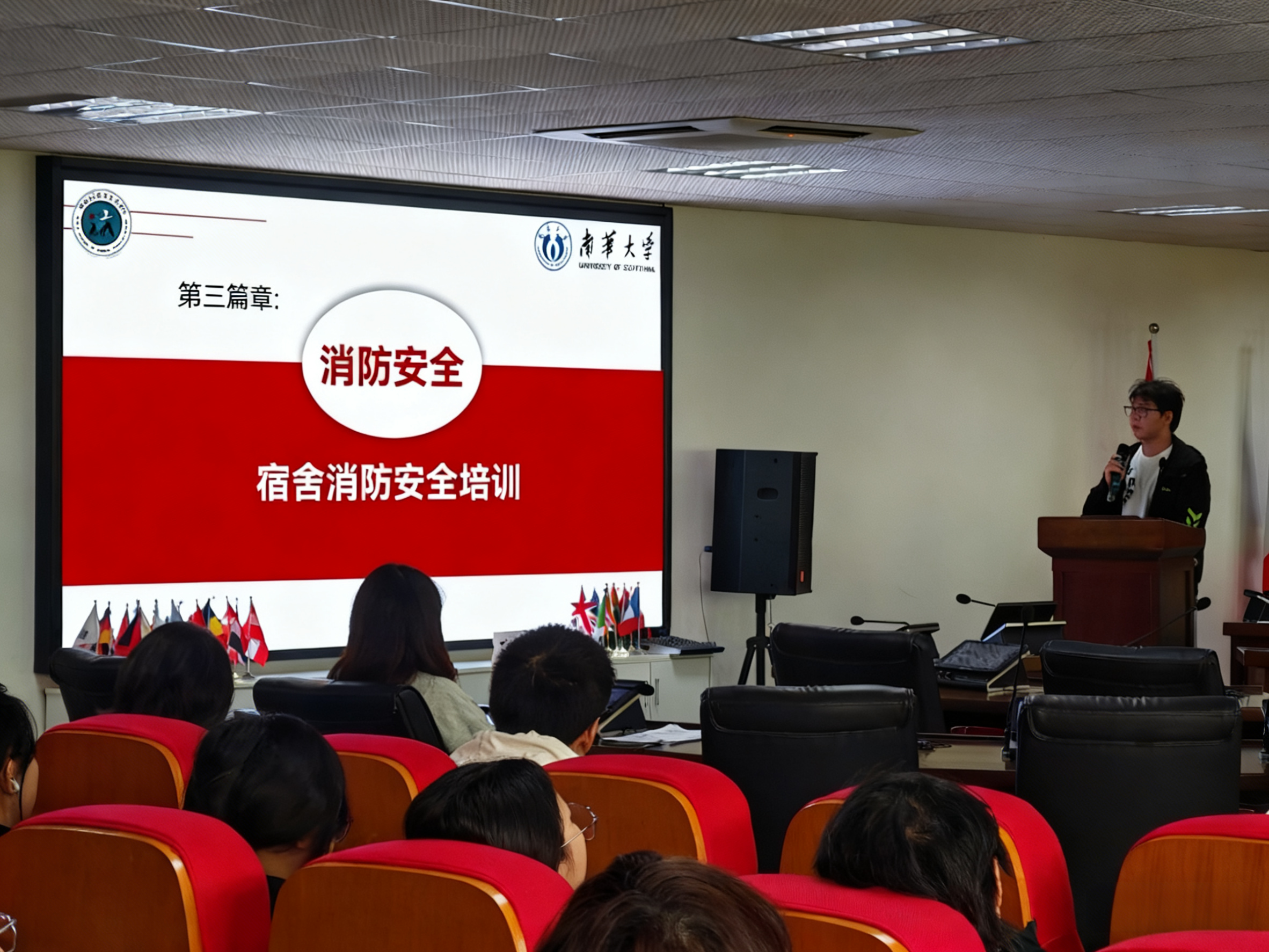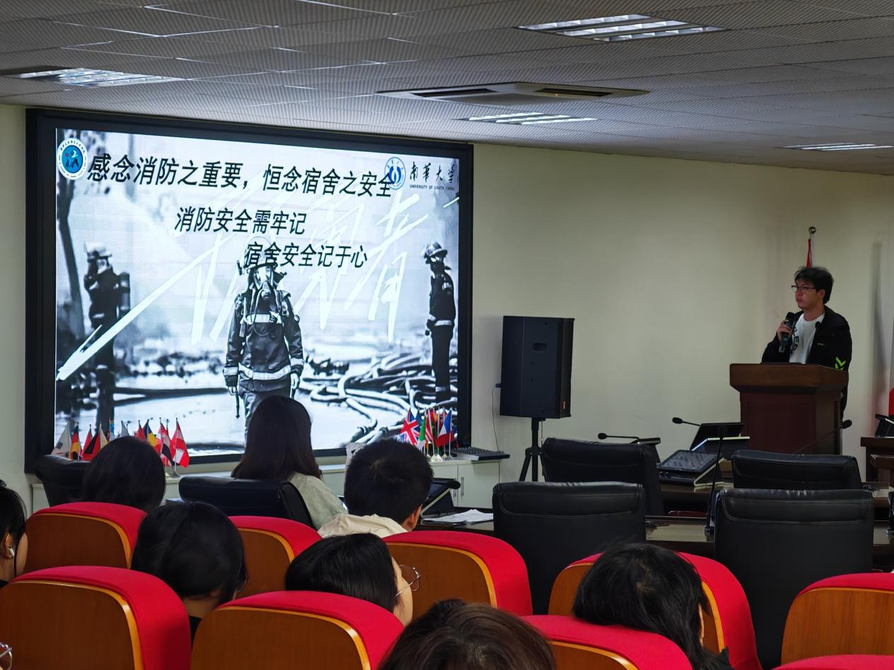 随后,自管部成员杨滨华聚焦消防安全进行专题培训。他以真实案例为切入点,剖析宿舍生活中易被忽视的消防安全隐患,提醒同学们要时刻绷紧消防安全弦。针对违规电器使用、乱拉插板、明火使用等重点问题,他解释道,宿舍易燃物品较多,大功率电器滥用、吸烟等行为极易引发火情,危及生命财产安全。他呼吁,作为宿舍安全第一防线,生活委员与寝室长要做好安全宣传,强化日常管理,让安全理念融入生活。