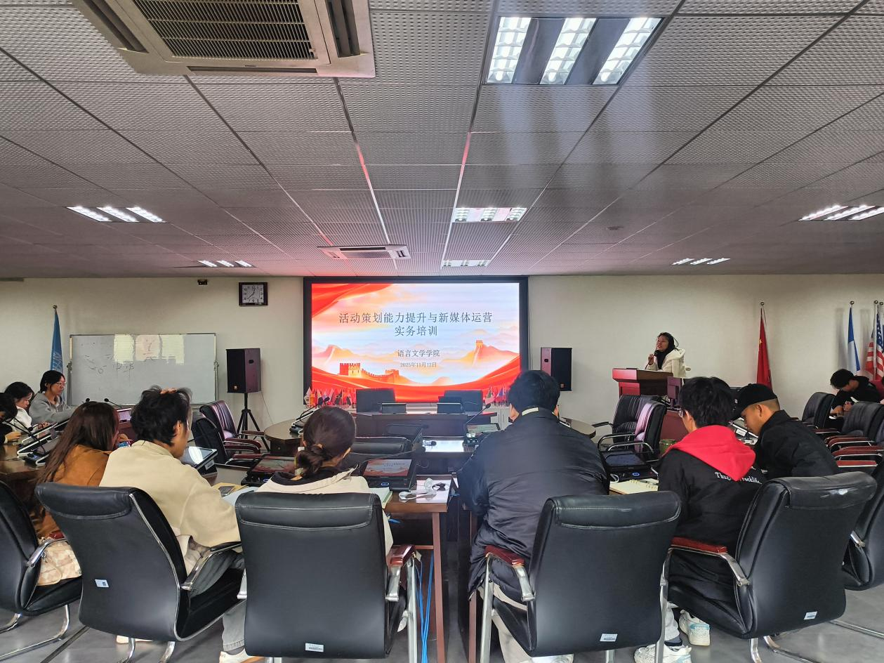 11月12日中午,语言文学学院于崇礼楼北406开展“菁蓝工程”第四期学生骨干培训,本次培训以“活动策划能力提升与新媒体运营实务”为主题,第九届全体团干、25级班长、副班长及团支书参加,学院团委书记肖玲慧主讲。