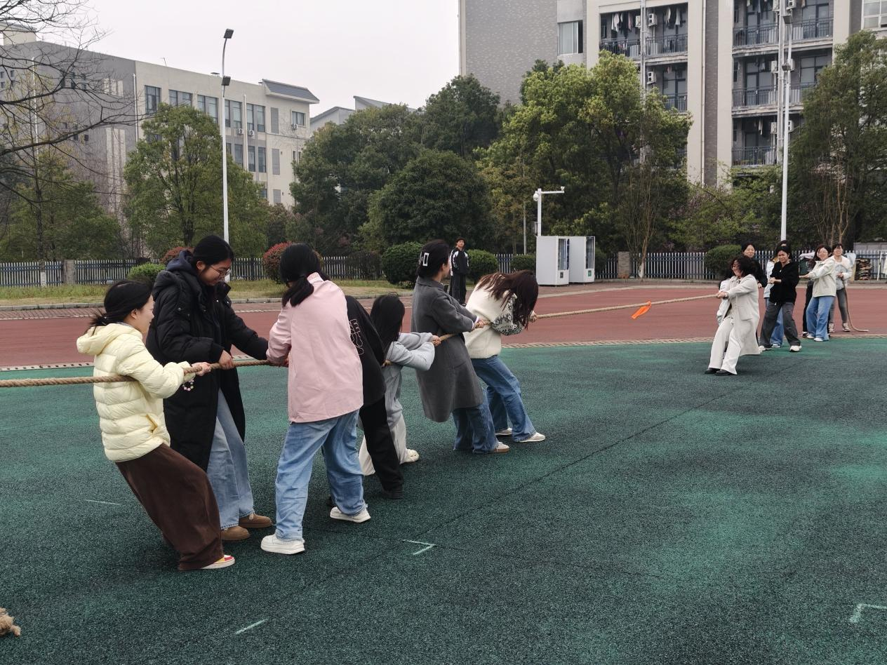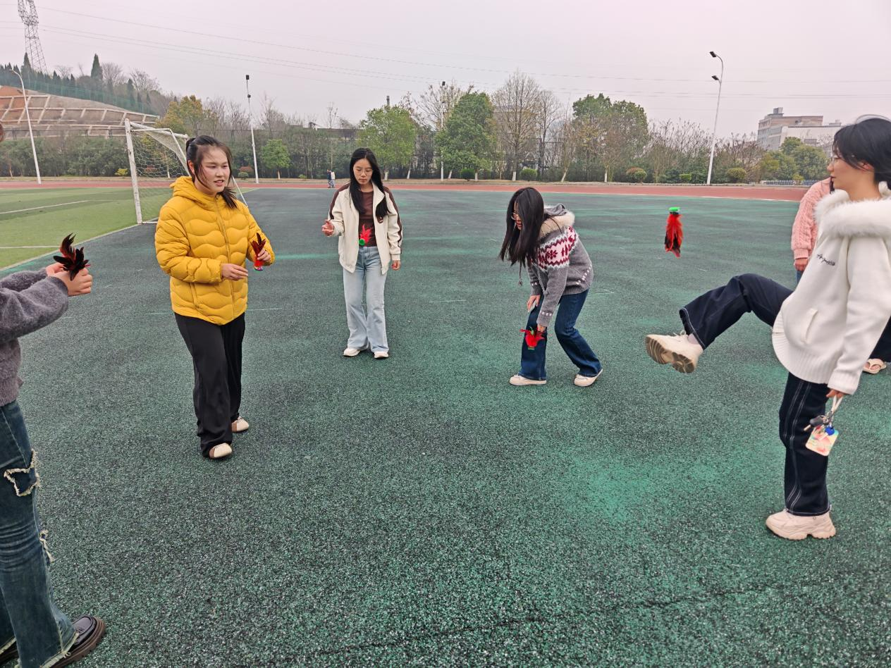 活动正式开始前,全体师生合影留念,本次趣味运动会正式拉开序幕。王冰灵为参赛女生送上关怀与鼓励。合影结束后,各项趣味项目有序开展,现场秩序井然、氛围融洽。拔河比赛中,参赛女生自觉遵守规则,齐心协力投入比拼,展现出极强的团队凝聚力;踢毽子项目中,参赛女生神情专注、从容应对,脚尖轻扬间,彩色毽子翻飞跳跃、起落有致,同学们的动作连贯,失误时的调整衔接,展现出良好的运动状态和精神风貌。多人跳绳项目里,负责摇绳的女生动作稳健、频率均匀,参与跳绳的女生身姿轻盈、步伐协调,双方配合默契、节奏统一,始终以认真的态度参与活动,充分体现了学院女生积极向上的良好素养与极佳的团队协作能力。