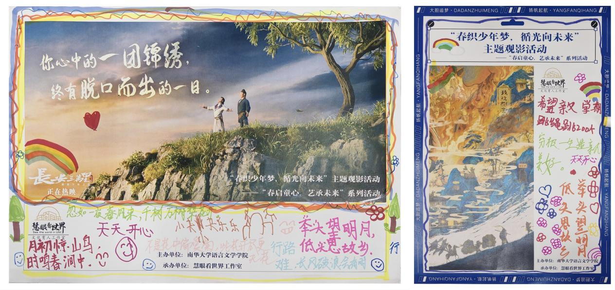 本次活动涵盖绘画填色、主题观影、手工制作三大板块,为孩子们打造多彩文化课堂。绘画填色环节,孩子们以画笔为翼,借斑斓色彩勾勒心中春景,让春日美学与童真创意碰撞出别样火花;主题观影中,无论是《长安三万里》的诗意大唐,还是《浪浪山小妖怪》的励志成长,正能量影片传递向上力量,观影后的互动问答环节,孩子们畅谈所思,提笔写下真挚感想,在光影中汲取精神养分;手工制作现场,孩子们巧手翻飞,将黏土捏塑成趣、把花草定格成景,在指尖实践中体验非遗与自然之美,让文化基因鲜活传承。