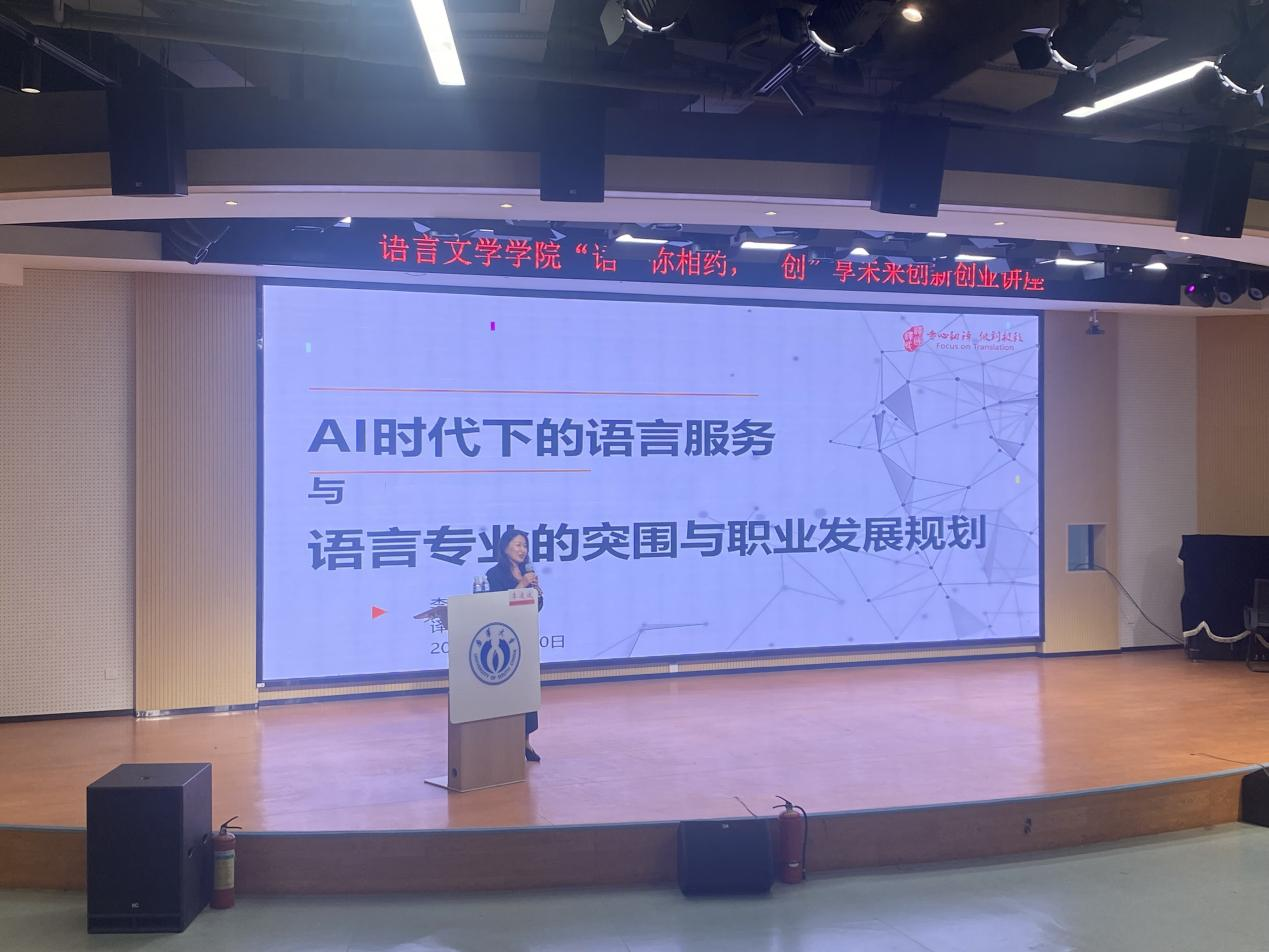 译国译民集团武汉公司总经理李凌波则以AI时代为背景,为语言专业学生规划发展路径。她解析升学与就业两大方向,重点阐述就业领域,提出“外语+技术”、“外语+电商”等复合能力建构模式。结合行业数据,她强调学历、证书与实习经验的重要性,教导学生以看新闻、开始用、多探索的方式拥抱人工智能。