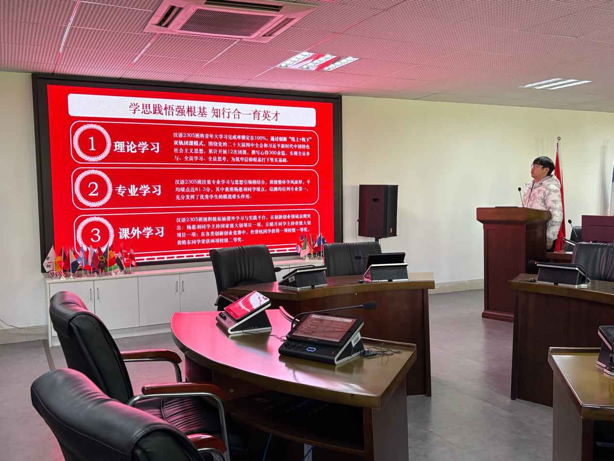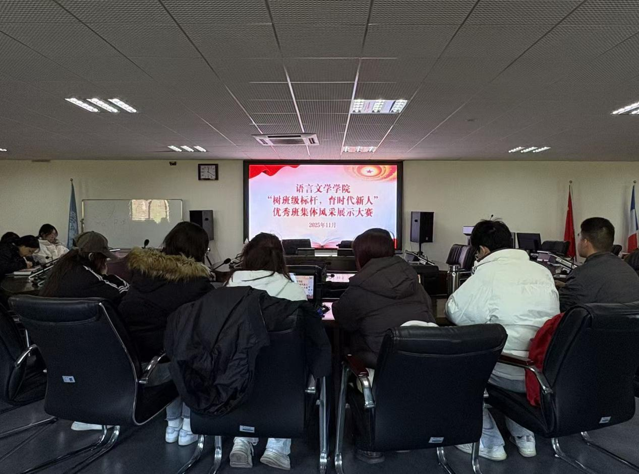 11月19日,语言文学学院在崇礼楼北406教室成功举办了以“树班级标杆,育时代新人”为主题的优秀班集体风采展示大赛。大赛以班集体建设为抓手,践行立德树人根本任务,为全体学生搭建了班级交流与风采展示的优质平台,充分彰显学院“以文育人、以文化人”的办学特色。学院团委书记肖玲慧,辅导员刘奇峰、刘俞慧担任评委,团委副书记伍绍路主持。