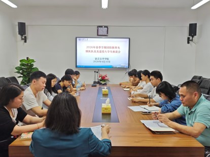 4月10日下午,语言文学学院国防教育先锋队学生座谈会于崇礼楼北410会议室顺利召开。辅导员刘奇峰主持。