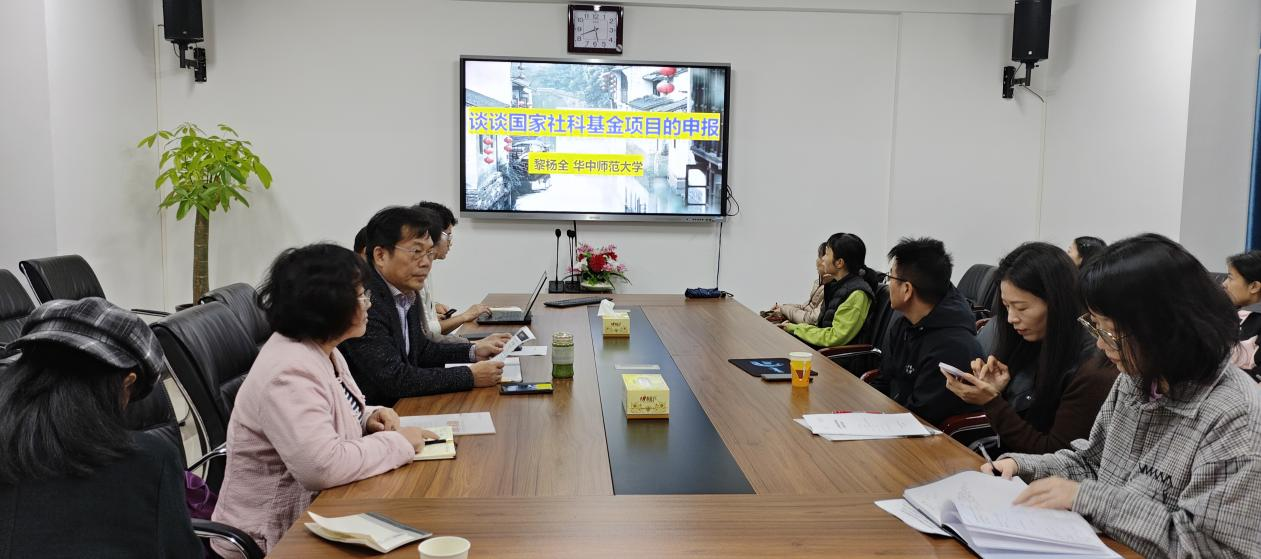 2025年11月3日上午,青年长江学者、华中师范大学博士生导师黎杨全教授应邀应邀莅临我校做学术讲座。本次讲座在雨母校区崇礼楼410会议室举行,语言文学学院党委书记龙志坚担任主持人,副院长肖庚生、中文系主任胡用琼及部分教师、研究生到场聆听。