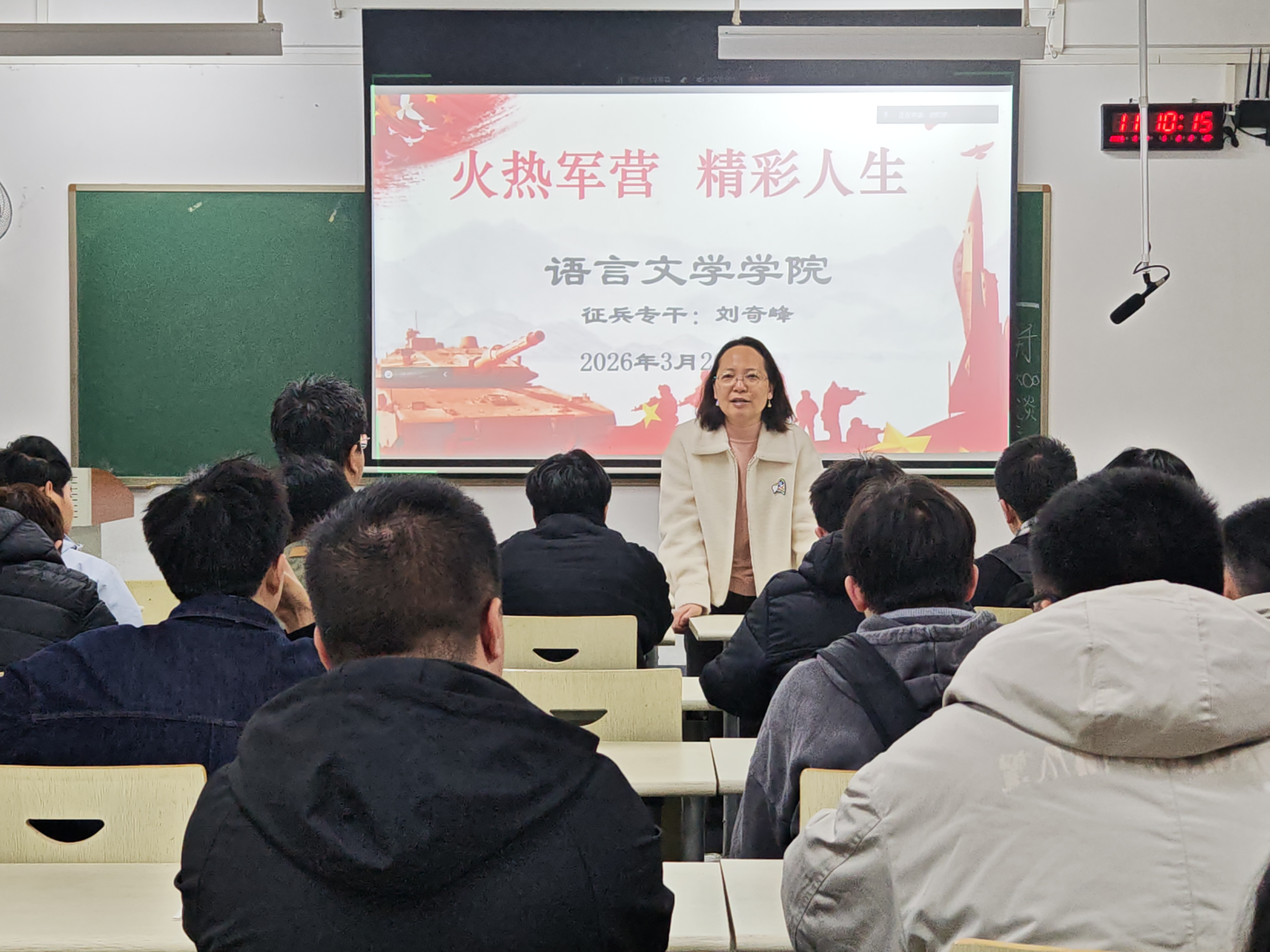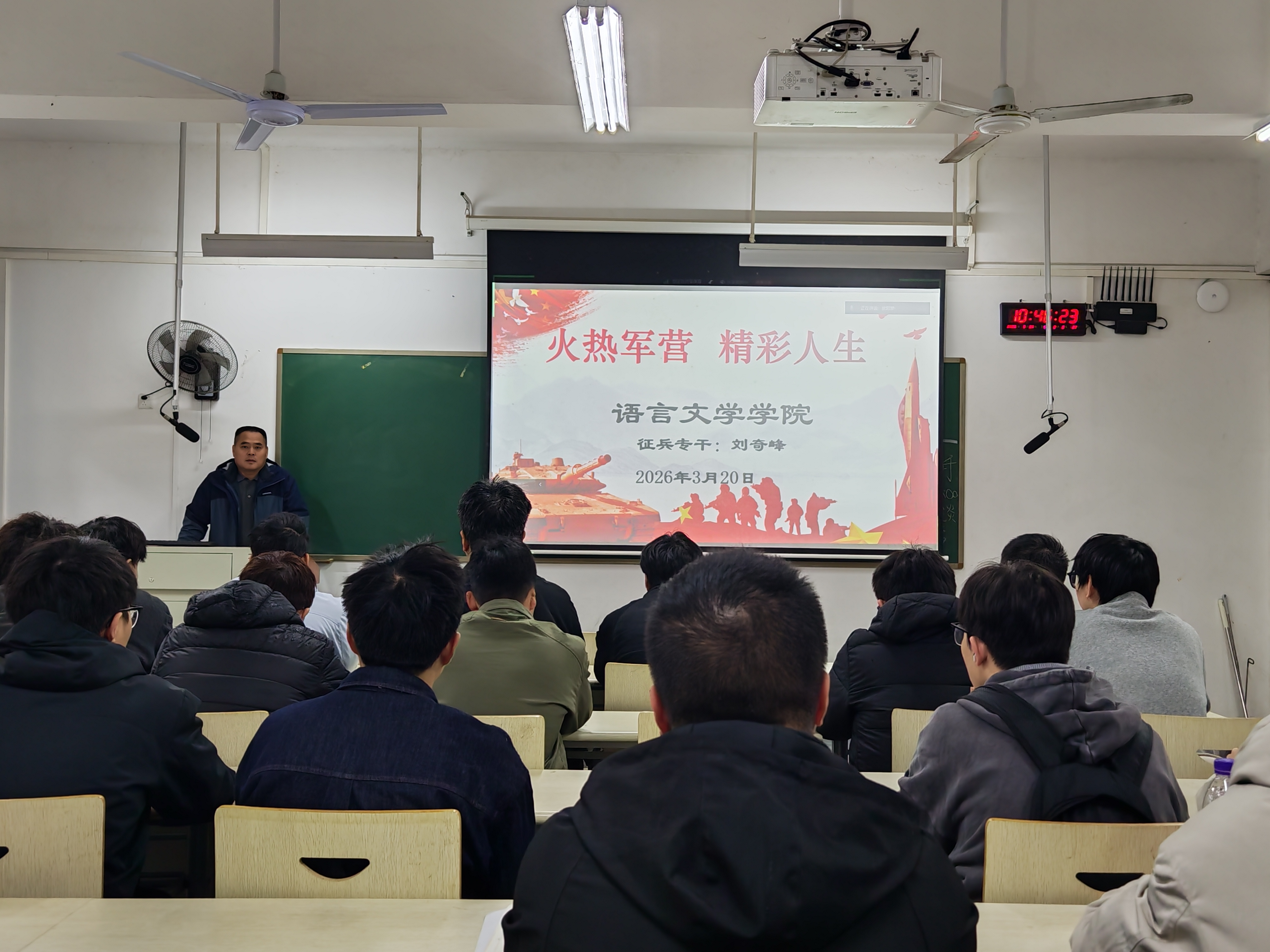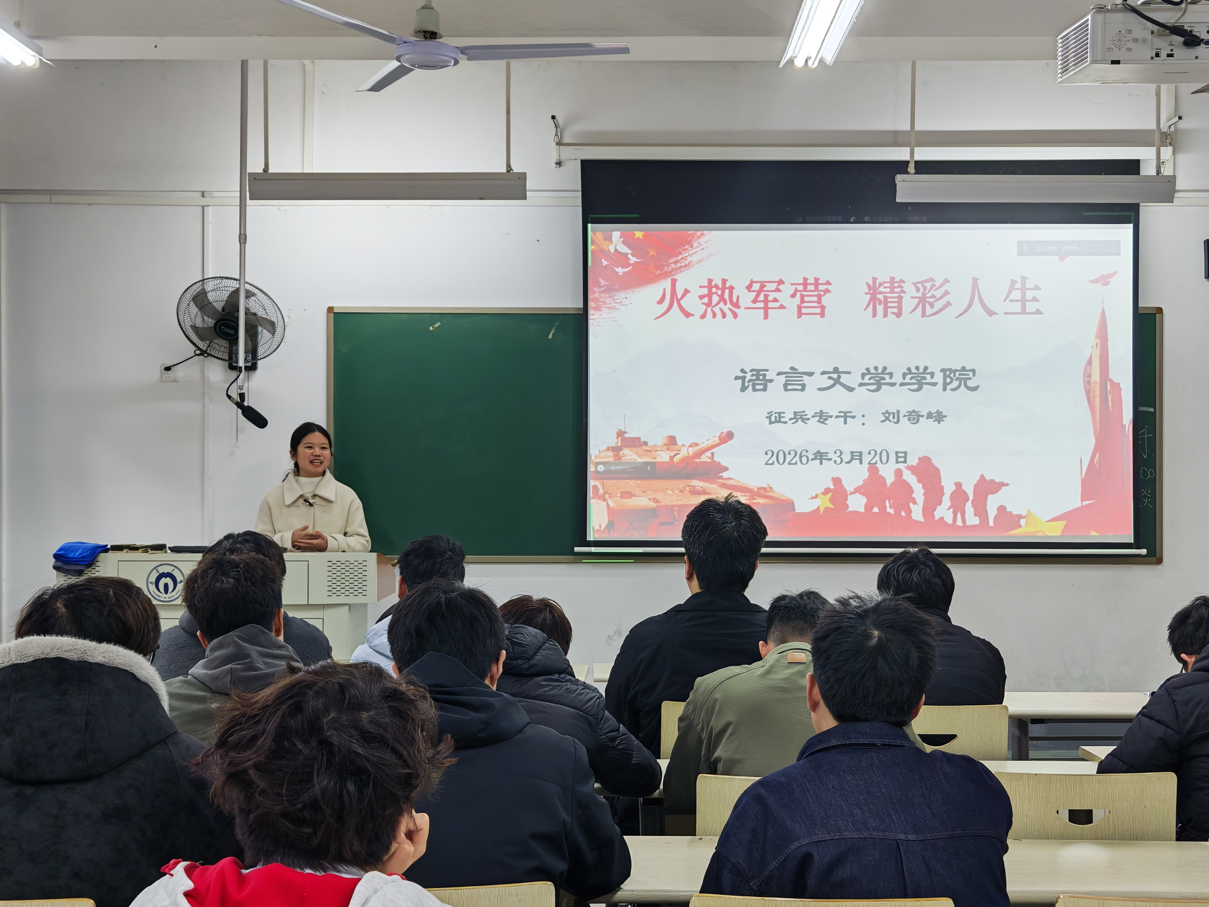 为进一步激发青年学子参军报国热情,引导学生树立正确的择业观与价值观,3月20日上午,语言文学学院于崇礼楼北208教室成功举办“火热军营,精彩人生”征兵宣讲会,学院征兵专干刘奇峰主持。