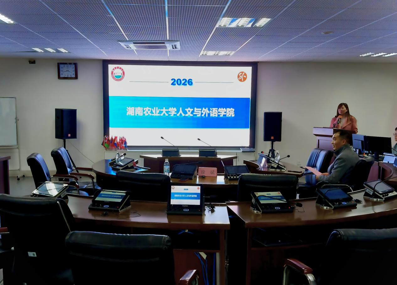 会中,徐斌围绕学院概况、培养特色、培养成效三方面展开介绍。学院概况方面,她简单介绍了学院专业、招生规模及研究生教师队伍,同时提及校本特色“强农科之基”为学院的专业提供了导向;培养特色方面,徐斌从语言文学内外交叉和语言服务涉农为农两大亮点入手,介绍了学院人才培养团队、毕业条件。同时深入阐述了学院构建的多元协同实践育人体系:通过校馆合作,校企、校校协同等多元合作模式实现特色育人,打造出“青禾传译”“稻香剧社”等极具影响力的文化传译志愿服务品牌,生动展现了学院理论与实践相结合的鲜明办学思路;谈及培养成效,徐斌则直接展示具体数据、学院的学科竞赛成果、毕业学生去向和创新人才培养的丰硕成果。