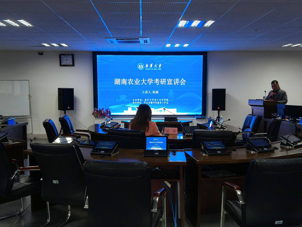 3月26日,为进一步帮助同学们解答考研相关疑问并提供指导,语言文学学院于崇礼楼北406开展考研指导与宣讲活动,特邀湖南农业大学人文与外语学院徐斌教授主讲,语言文学学院学工室主任肖勇主持。